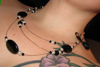 Oufffff, ça fesait un moment que j'avais pas fait de colier. Bon il est pas parfait mais je l'aime bien j'espère juste que la personne qui l'aura en cadeau l'aimera aussi!!! Bon on se met aux boucles d'oreilles maintenant!!!